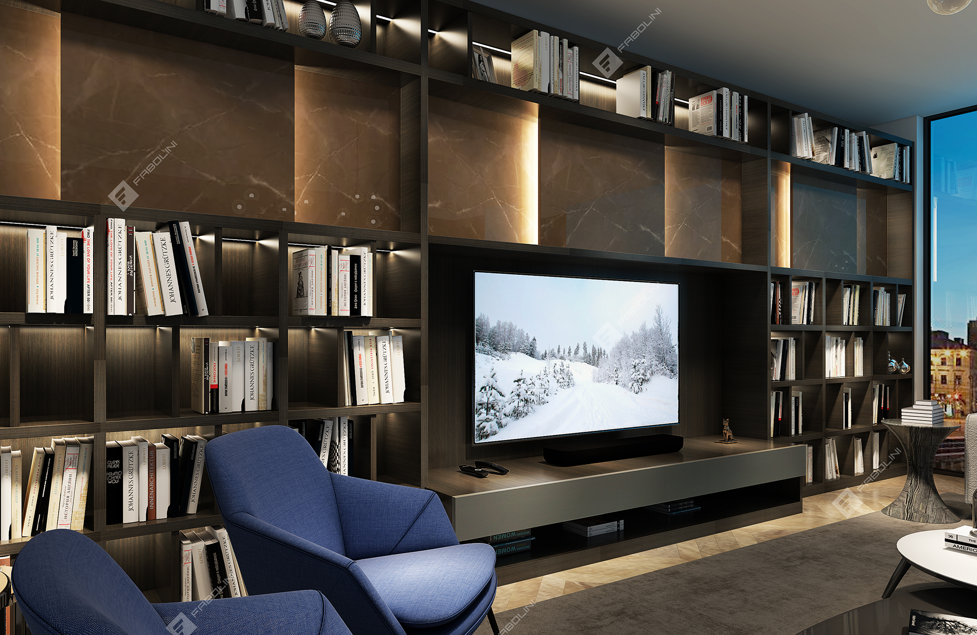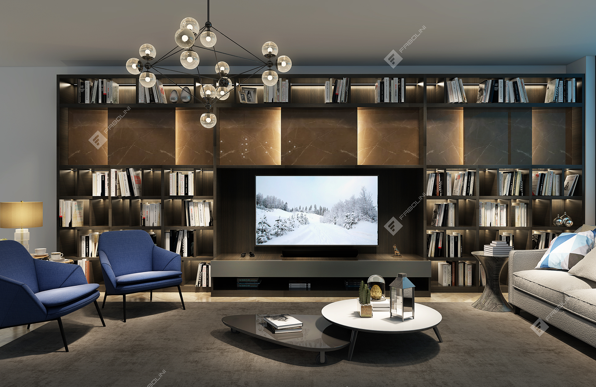 设计理念:舒适的设计,必须让客户能够在一个空间中尽情享受阅读、放松和沟通的综合乐趣。法博利尼客厅系统融汇了生活与家居空间,使生活视野豁然开朗,让家人尽情享受住宅中的欢聚时光。